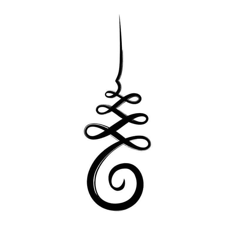 The symbol is made up of “a base spiral, a series of looping curves, and then a straightening line typically crowned with 3 dots”